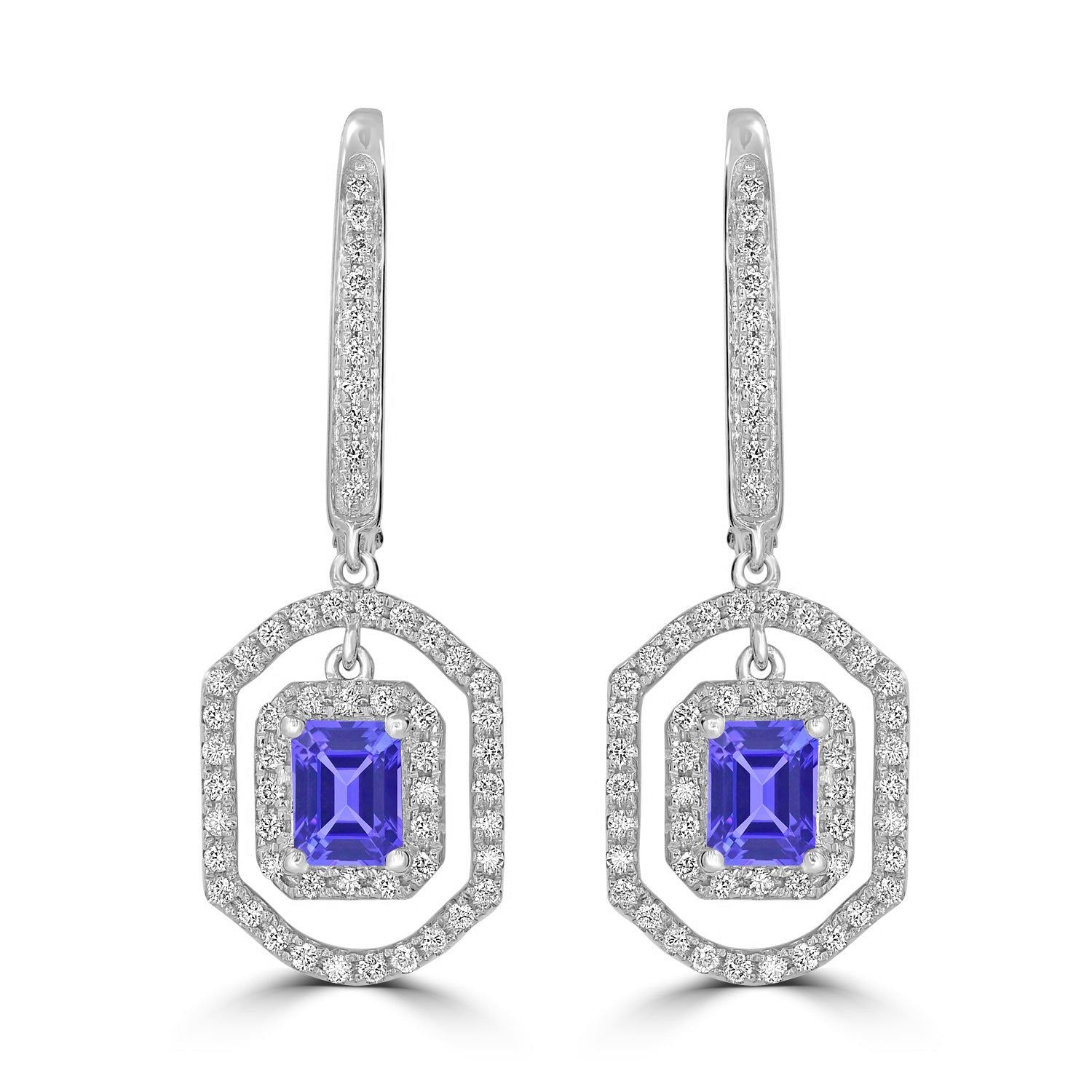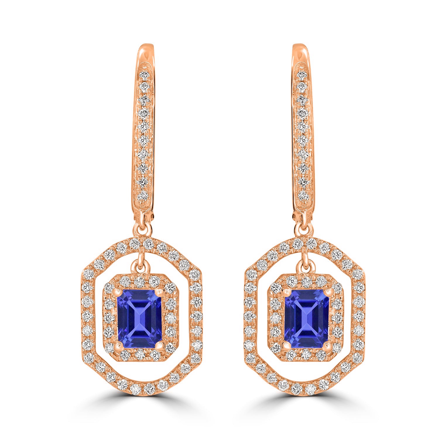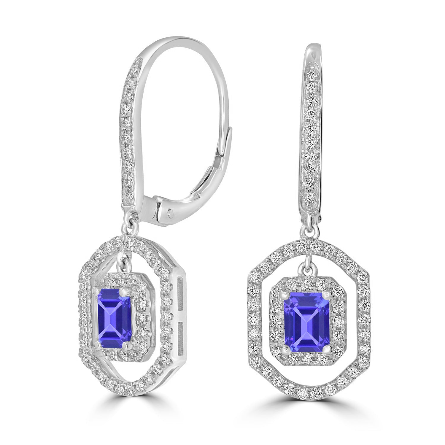0.86ct Emerald Cut Tanzanite Earring with 0.43 cttw Diamond