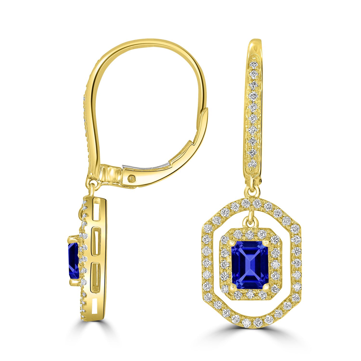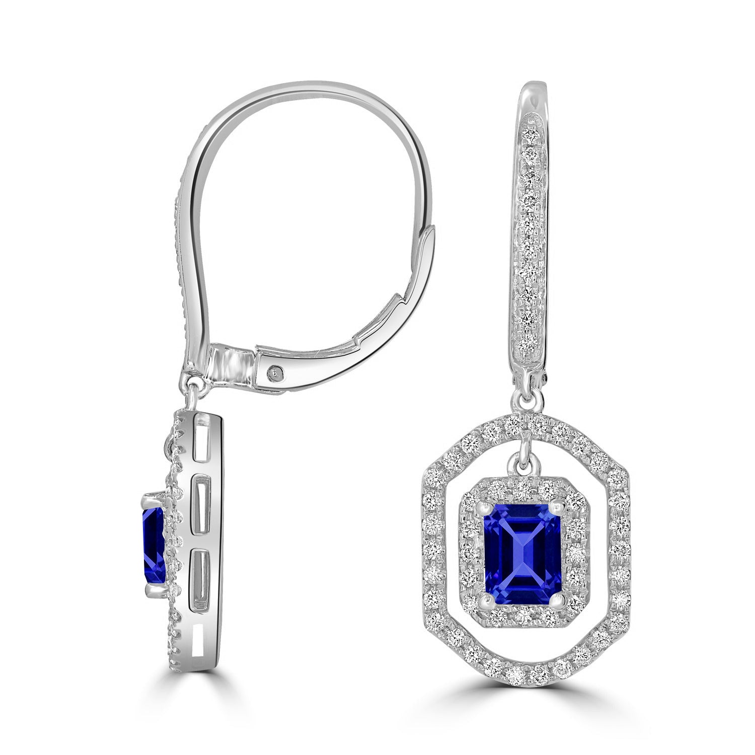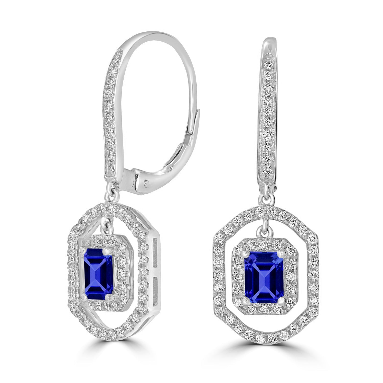 0.86ct Emerald Cut Tanzanite Earring with 0.43 cttw Diamond