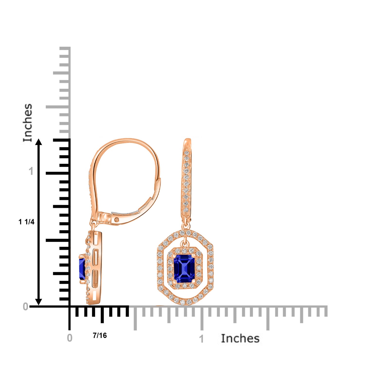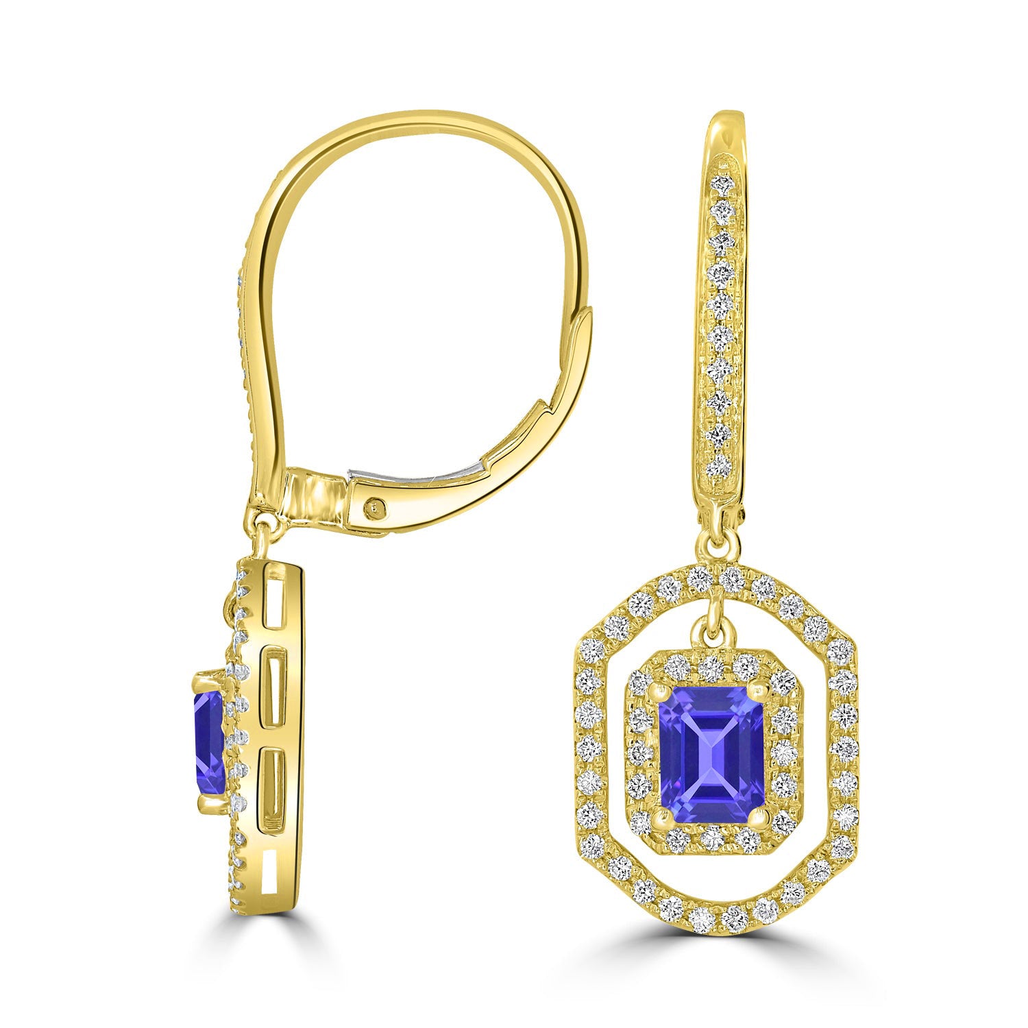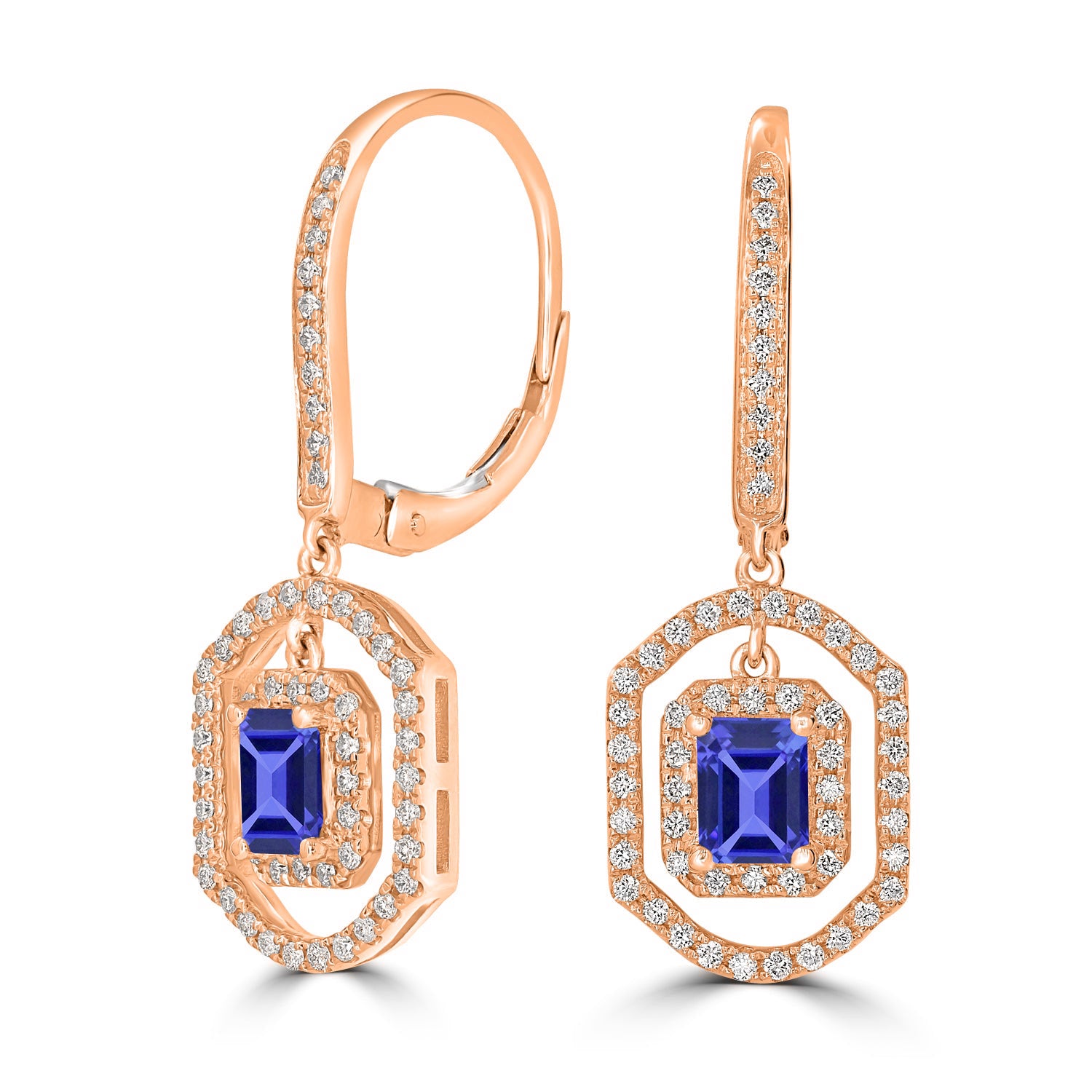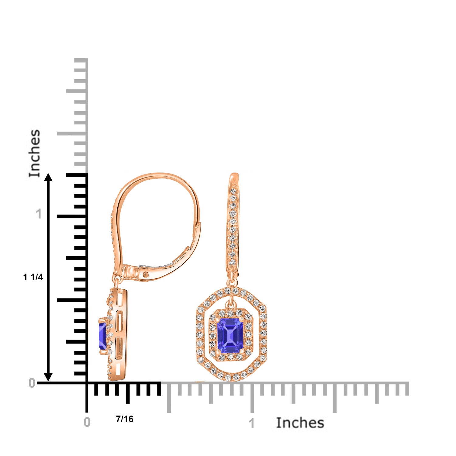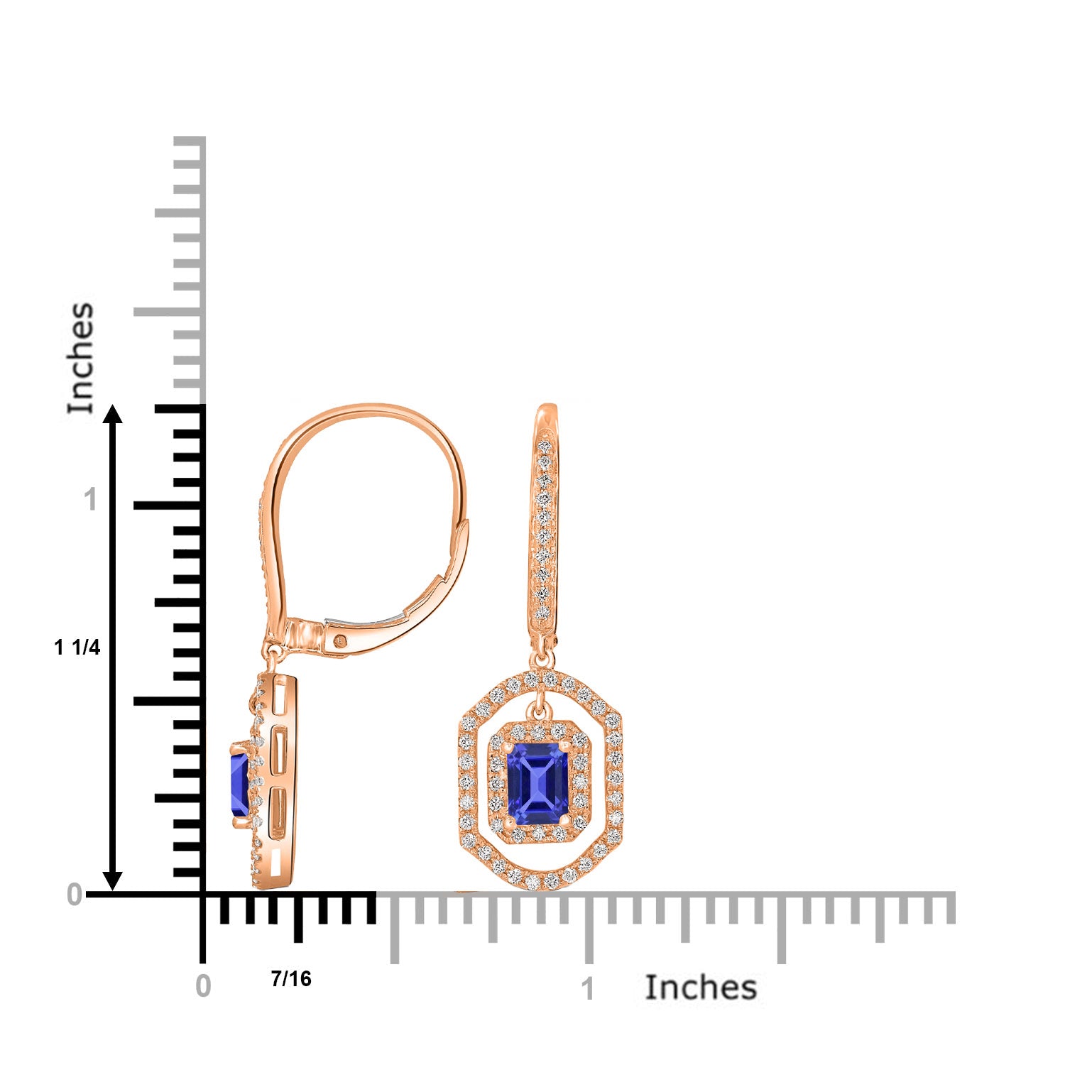 5X4mm Violetish Blue Tanzanite AAAA Earring Emerald Cut shape 0.86ct with 0.43cttw Diamond in 14K & 18K White Gold, Yellow Gold & Rose Gold