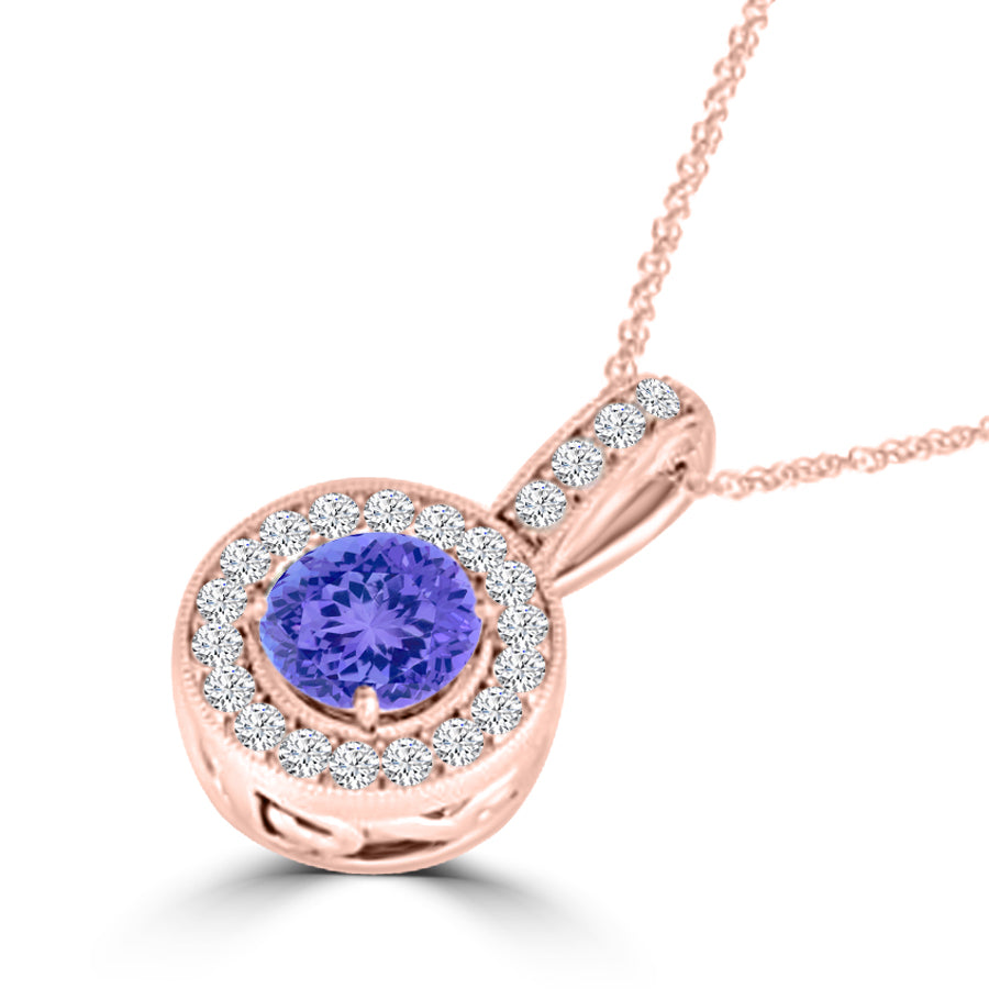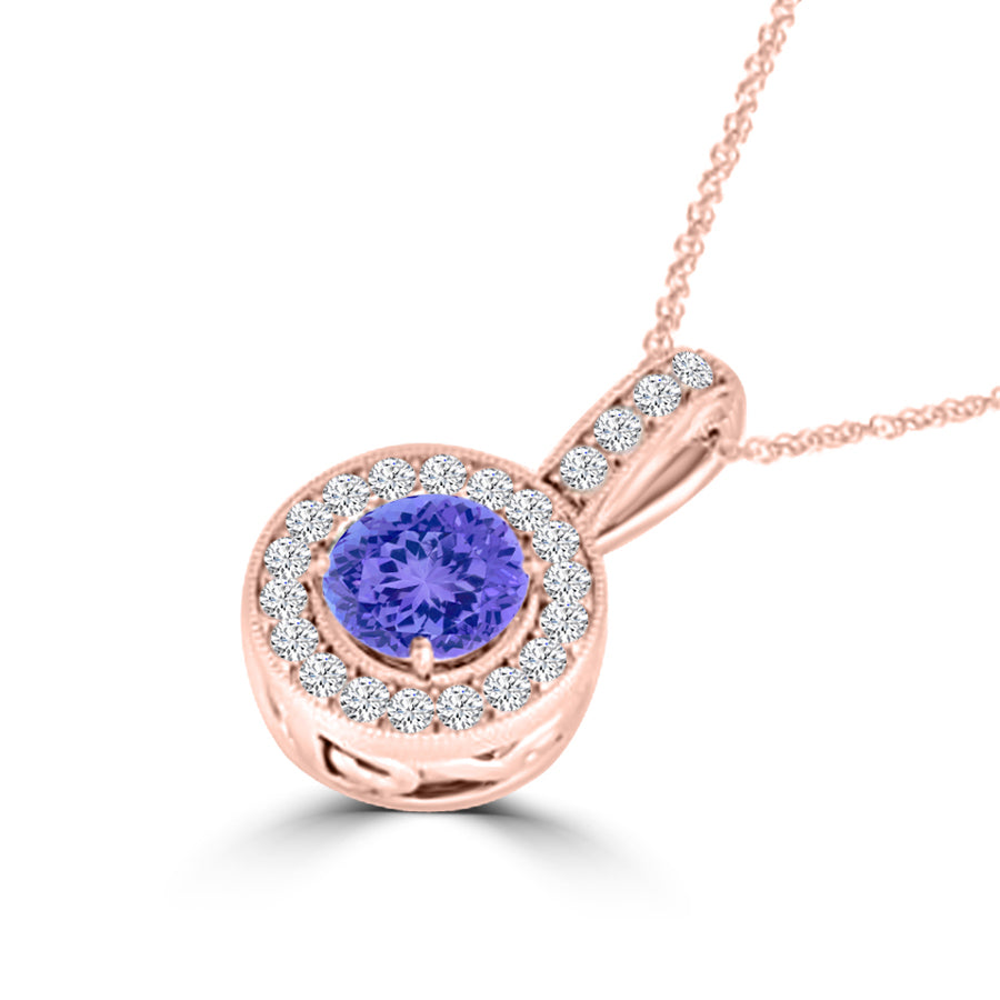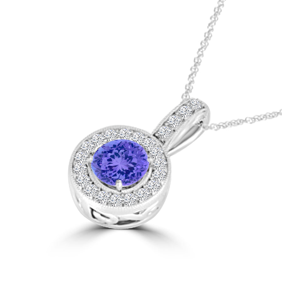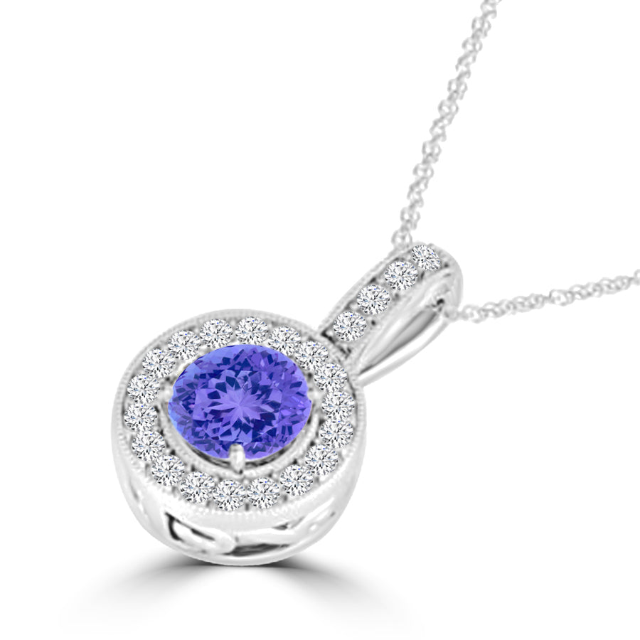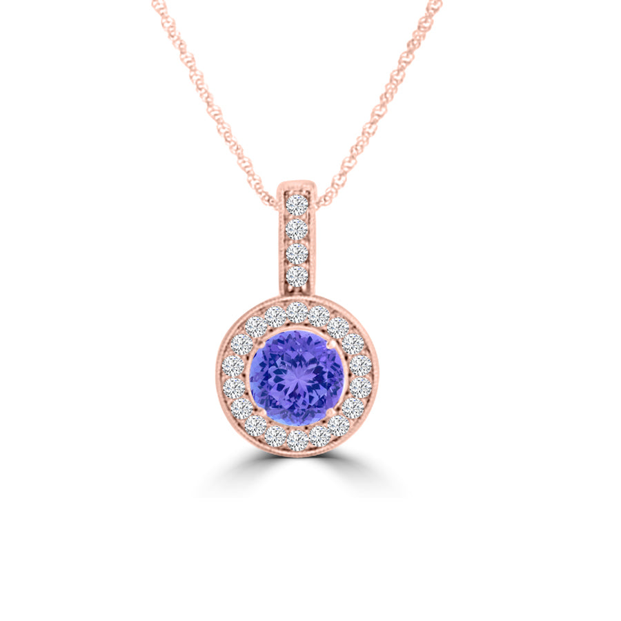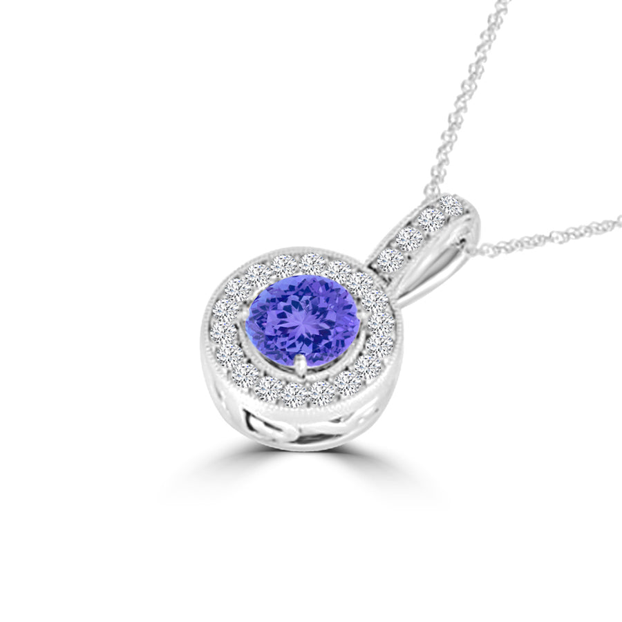 TMR121133 - Hannah - Round Tanzanite and Diamond Pendant Halo