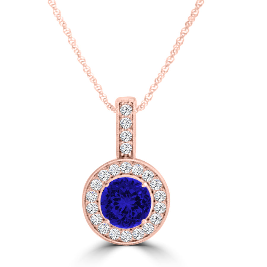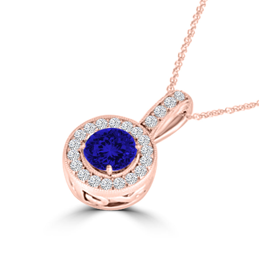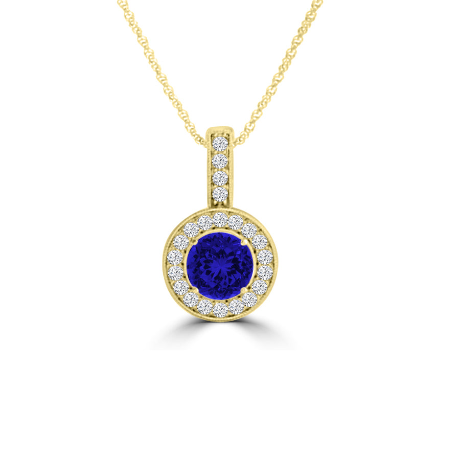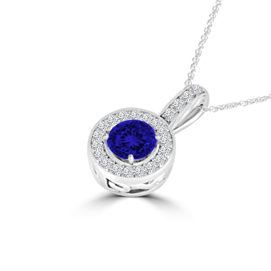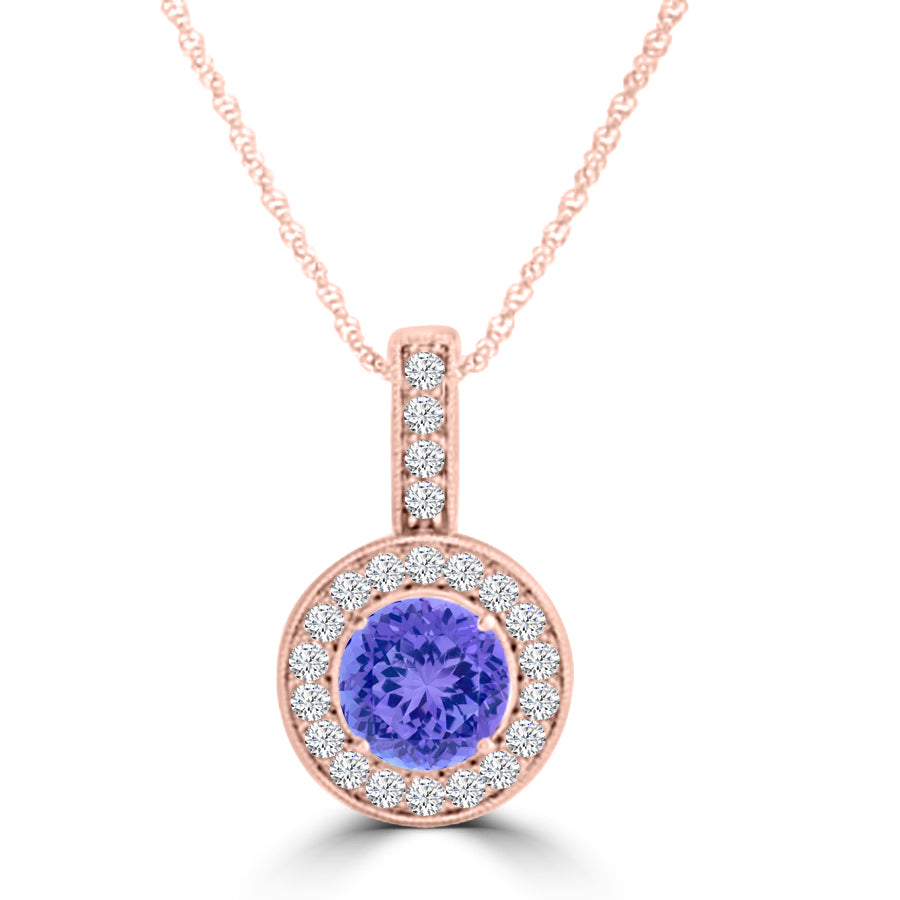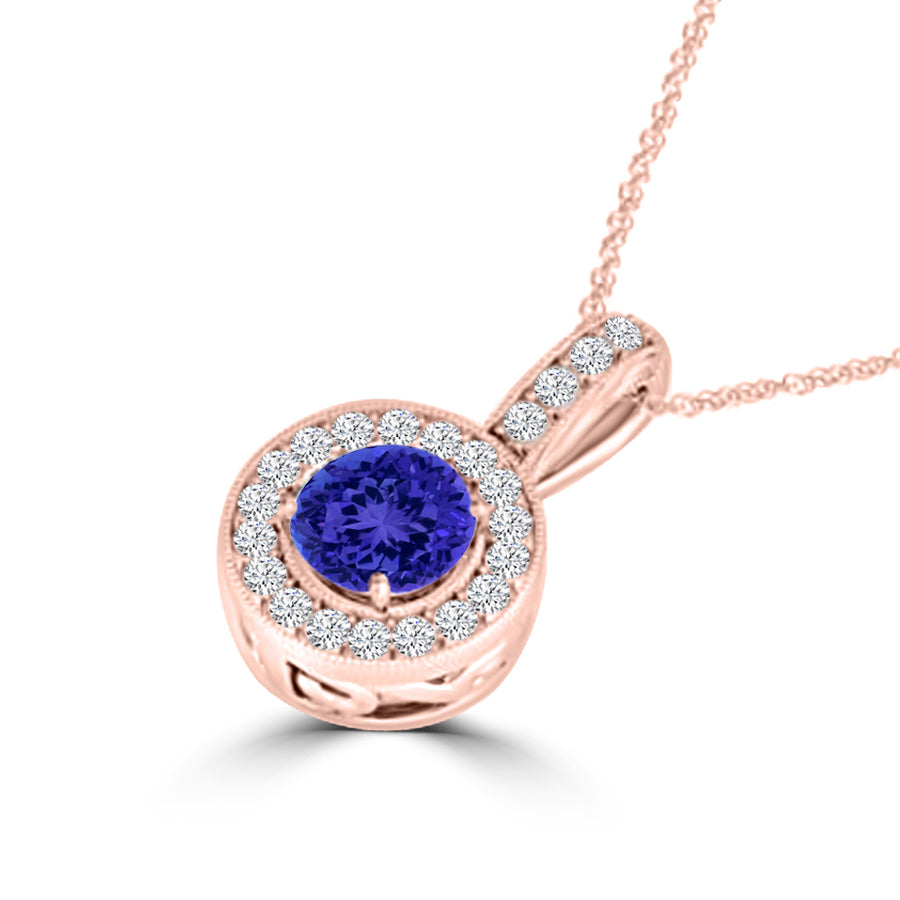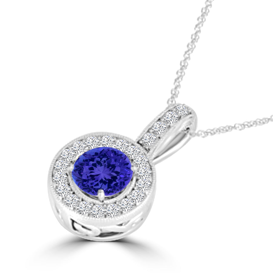 TMR121133 - Hannah - Round Tanzanite and Diamond Pendant Halo