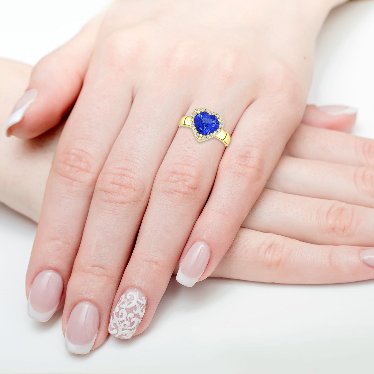 2.63ct AAAA Heart Tanzanite Ring With 2.24 cttw Diamond in 14K Yellow Gold