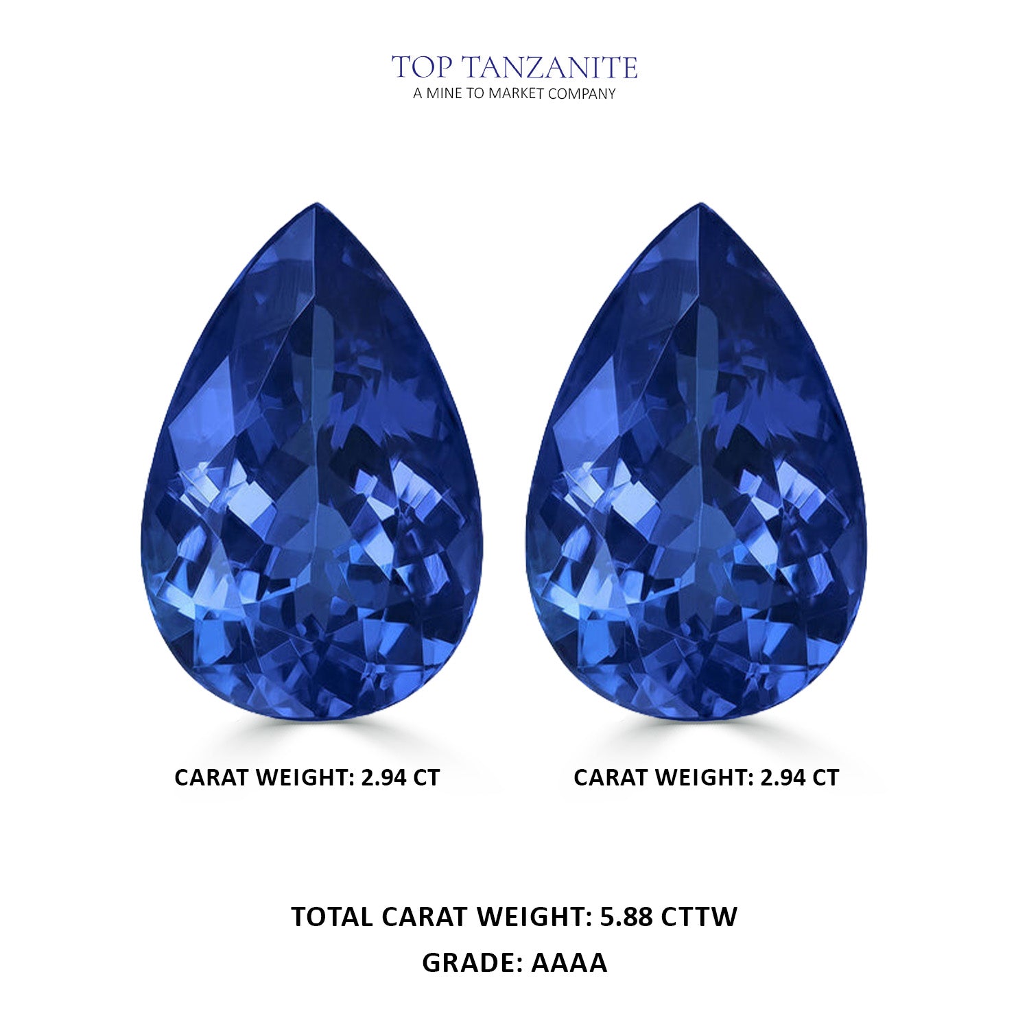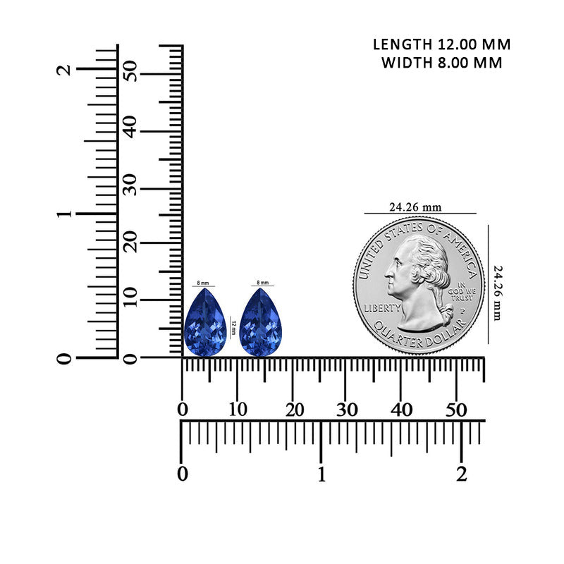 5.88cttw AAAA Matched Pair Pear Shape Certified Tanzanite Gemstone 12.00x8.00mm