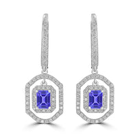 0.86ct Emerald Cut Tanzanite Earring with 0.43 cttw Diamond