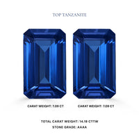 Top Tanzanite is a mine-to-market brand known for ethically sourced, high-quality natural Tanzanite gemstones. This certified matched pair features Emerald Cut stones measuring 12.00x7.50mm each, with a total weight of 14.18cttw (7.09ct per stone). Graded AAAA, these Tanzanites showcase a vivid violet-blue color and exceptional clarity. Perfect for custom earrings, fine jewelry, or a thoughtful anniversary or engagement gift, this pair reflects expert craftsmanship, authenticity, and timeless elegance—direct from the mines of Tanzania.