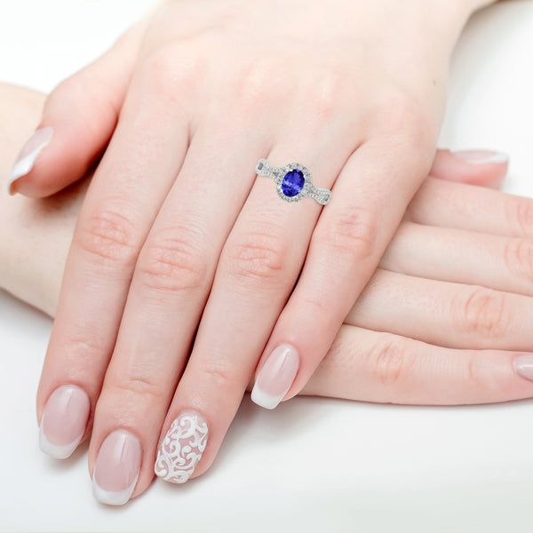 0.76ct Oval Tanzanite Ring with 0.39 cttw Diamond