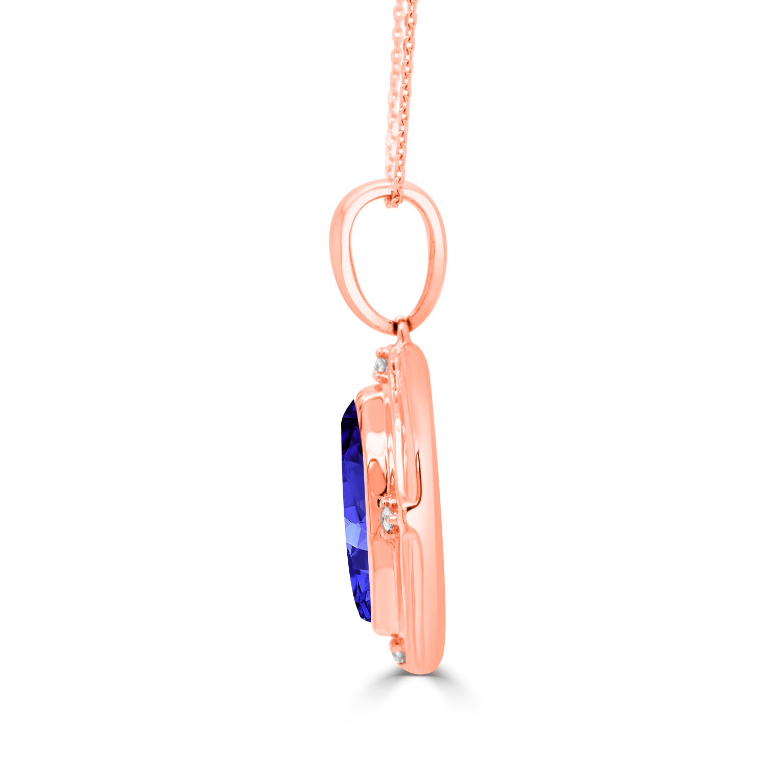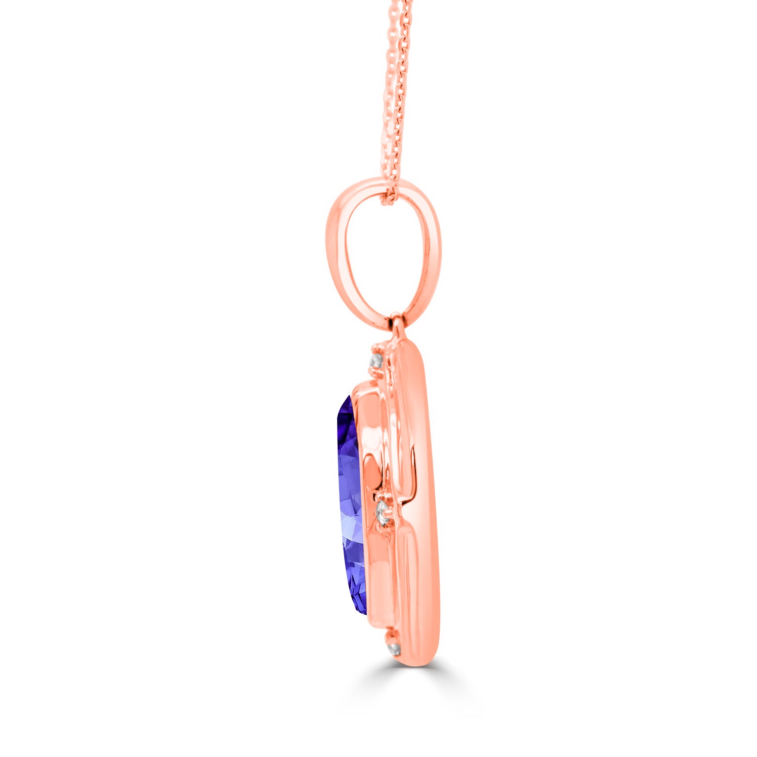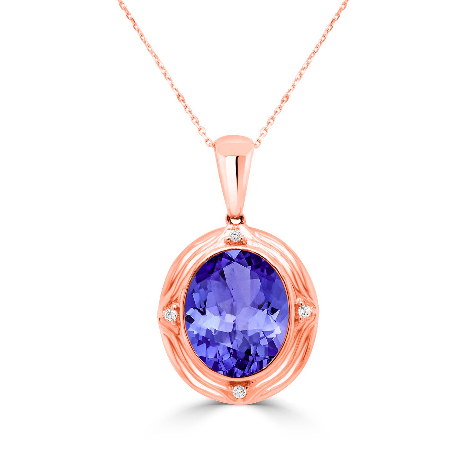 11X9mm Violetish Blue Tanzanite AAAA Pendant Oval shape 3.9ct with 0.03cttw Diamond in 14K & 18K White Gold, Yellow Gold & Rose Gold.