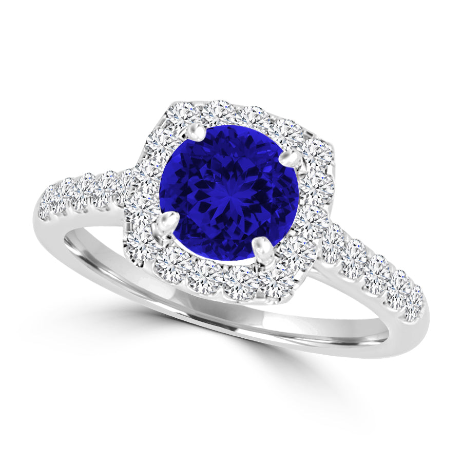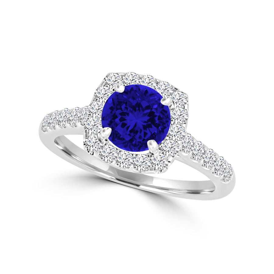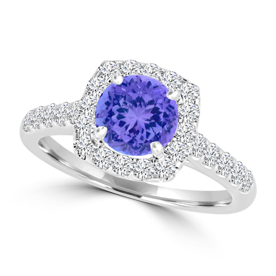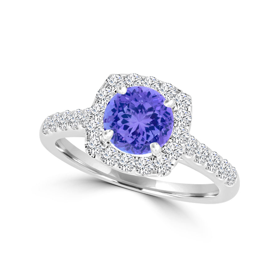 TMR121149 - Claire - Round Tanzanite and Diamond Ring Halo
